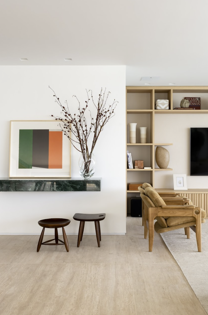 Assessoria completa na escolha de mobiliário, iluminação, tapetes, objetos decorativos, obras de arte e peças exclusivas. A curadoria é pensada para refletir a personalidade do cliente, resultando em ambientes autênticos, equilibrados e repletos de detalhes significativos.